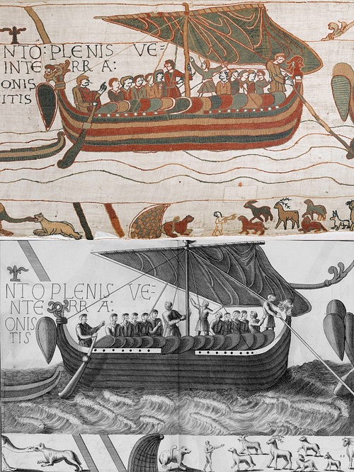 The Tapestry subsequently underwent major restoration – the synthetic dyes used for the thread date this post-1860. It is now a museum exhibit at Bayeux[*].