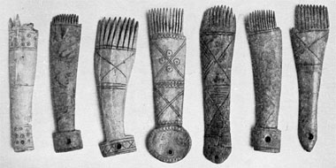 A dugout canoe, of oak, was discovered by a labourer clearing the ditch of a nearby field. There were hundreds of bone and antler objects, including 89 weaving combs (counting fragments, and 5 which were not finished) and 5 dice. Three of the dice were found in association with 23 disc-shaped polished pebbles, which, presumably, were counters.