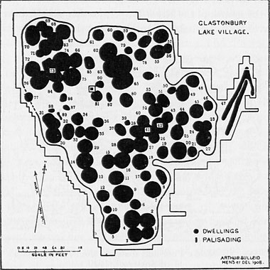 Investigations were begun towards the end of July, 1892, and were continued each year from May to October until 1898, when there was an unavoidable interruption in the work for five years. Excavations were resumed again in the summer of 1904, when Mr H. ST GEORGE GRAY, F.S.A., happily joined the writer as a joint director and secretary of the work until its termination in 1907.After their work at the Glastonbury site, Bullied and Gray investigated a broadly contemporary site at nearby Meare. The settlements found at Glastonbury and Meare are often mentioned in the same breath, but they are quite different. While Glastonbury was constructed in a lake, Meare (which is actually two groups of houses, 60 metres apart) was built on a raised bog. At Meare there are clay floors and hearths, like Glastonbury, but unlike Glastonbury, there is very little superstructure remaining. This suggests that the houses were temporary affairs, like wigwams or tepees. Meare may have been a seasonal marketplace.III. ‘The Discovery of the Somerset Lake-Villages’