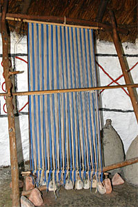 At the centre of the house was an open-hearth fire, which would have been maintained at all times.[*] A bronze cauldron might be suspended from a tripod, by a chain, over the fire. The fire would have also enabled food to be preserved by drying and smoking. (Salt was also available to preserve meat.[*]) Spinning and weaving were domestic activities.[*]